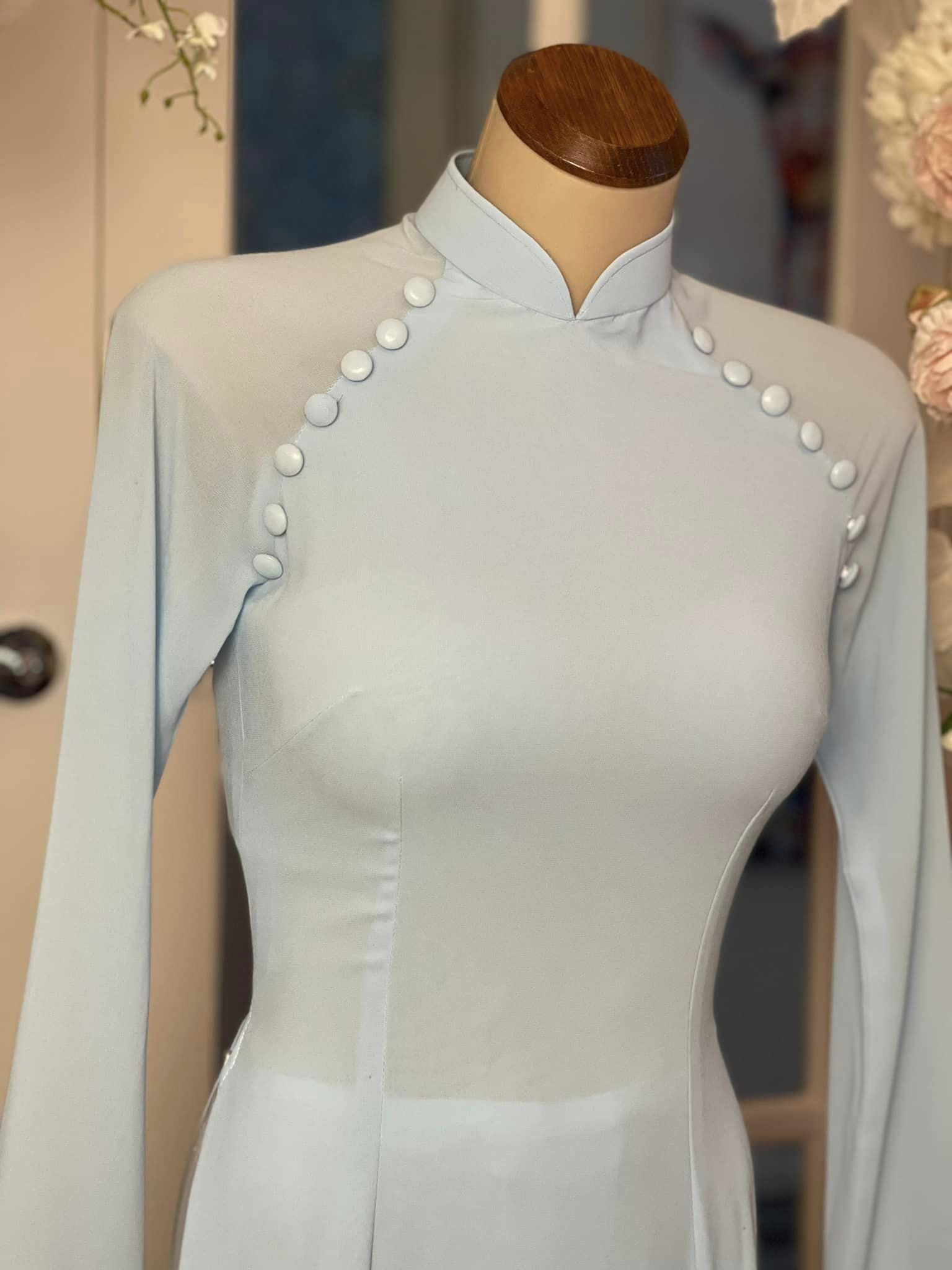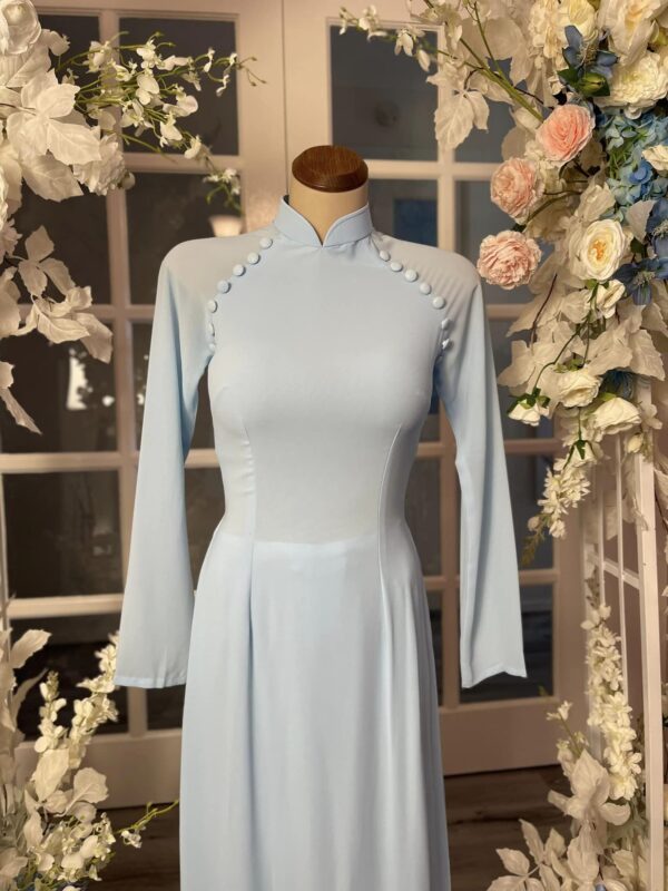 Be the first to review “Ngoc Duyen 02 – Maya Blue Double Layered Chiffon with Buttons”